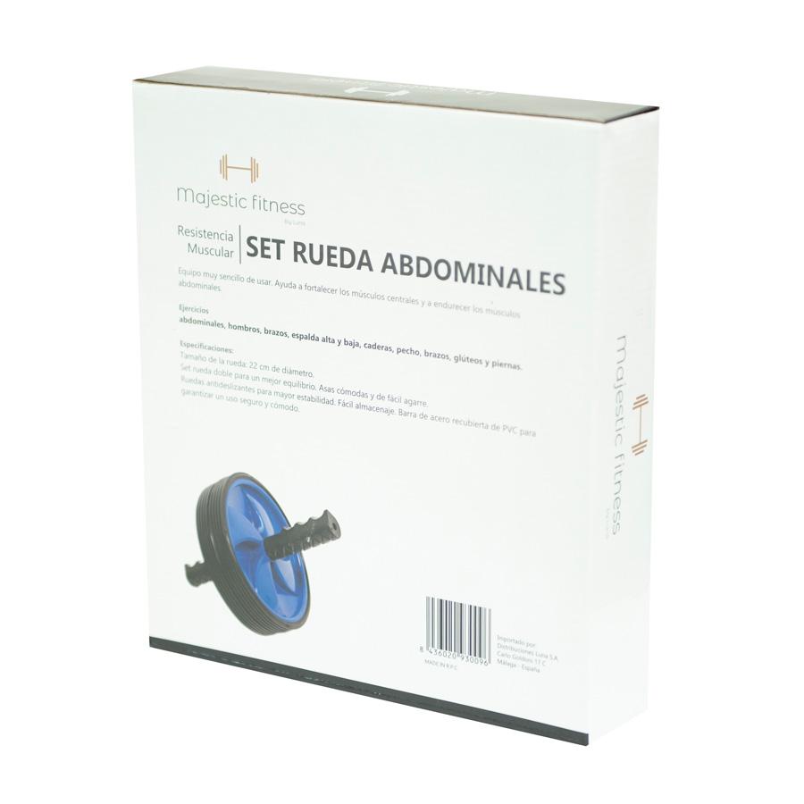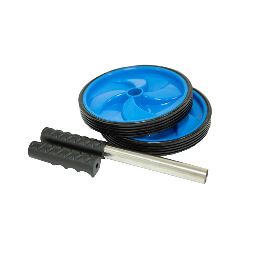 Set de rueda doble y empuñadura. Diseño en PVC con barra de acero recubierta para un agarre cómodo y antideslizante. Rueda doble de 22 cm para un mejor equilibrio. Ideal para fortalecer los músculos centrales y abdominales.